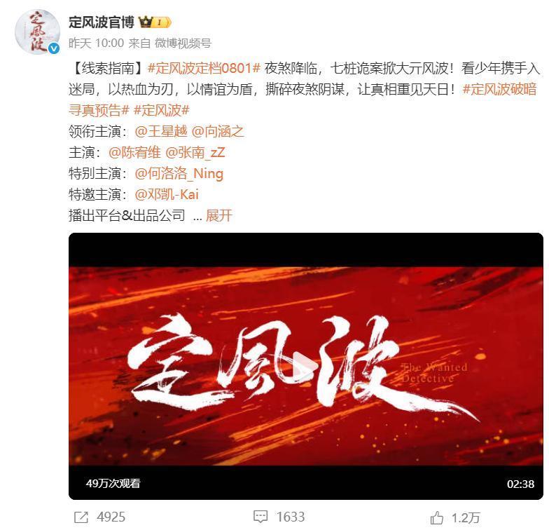 《定风波》接档《朝雪录》,既有优势,同时也有压力,优势是:这两部剧同类型,因为《朝雪录》,很多网友开始对破案题材剧感兴趣,所以这部剧开播后,大部分看过《朝雪录》的观众都会去追剧,压力是:如果《定风波》的质量没有《朝雪录》好,肯定会被网友吐槽。